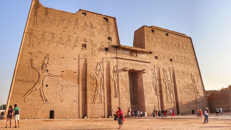 Pensión completa. Visita en Edfu del templo de Horus, el dios Halcón. Salida hacia Kom Ombo para visitar los templos gemelos de Sobek y Haroeris. Navegación a Aswan